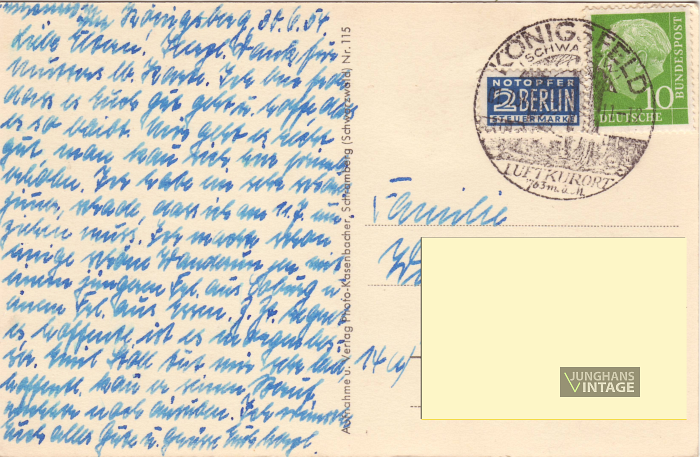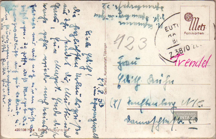 Postkarte Junghans Arbeiterwohnhaus; Rückseite