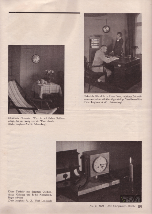 Die Uhrmacher Woche; 28. Jahrgang Nr. 7; 14. Februar 1931; Seite 119; Junghans Büro-Uhren