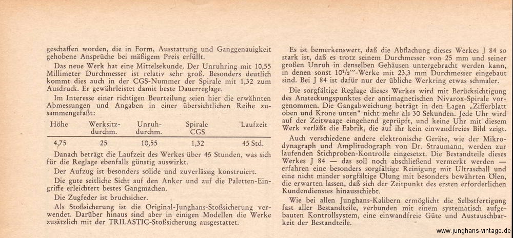 Artikel Junghans J84 "Die Uhr" Nr. 21/1955; S. 35
