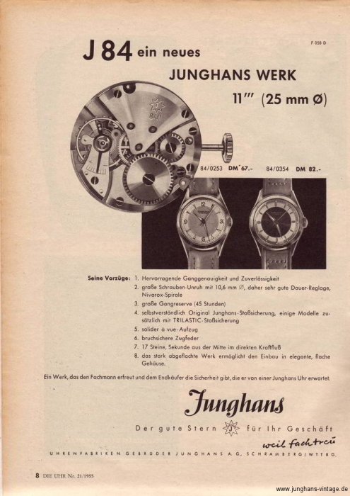 Werbung Junghans J84 "Die Uhr" Nr. 21/1955; S. 8