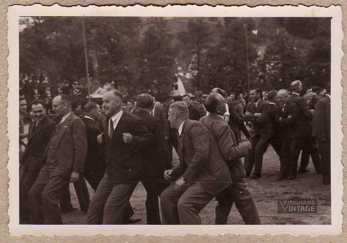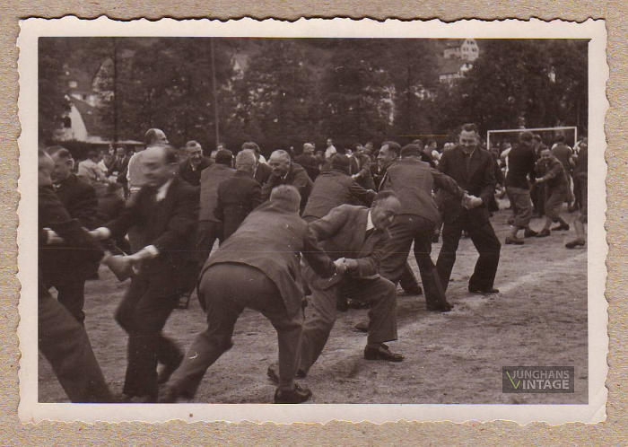 führende Mitarbeiter der Firma Junghans bei der Leibesertüchtigung auf dem Berneck-Sportplatz in Schramberg
