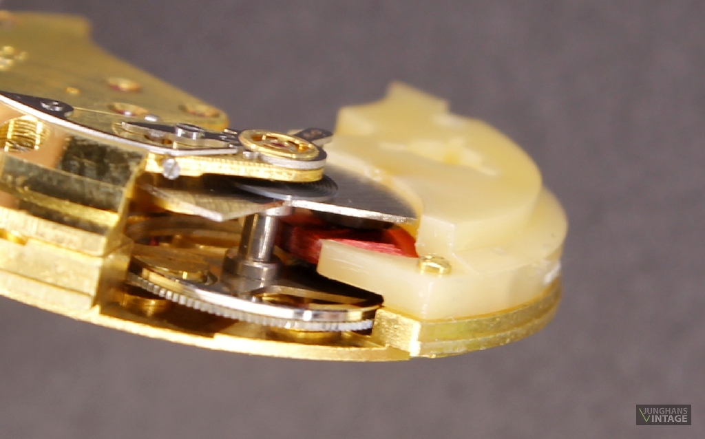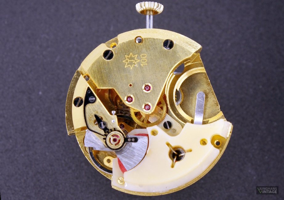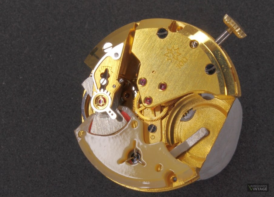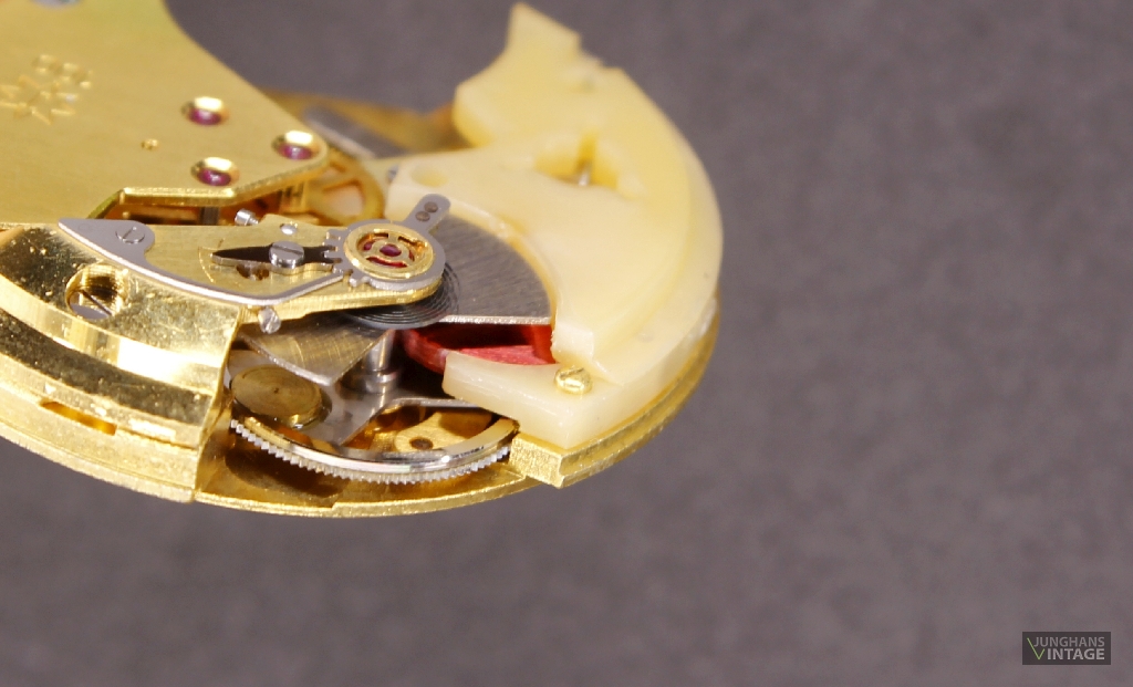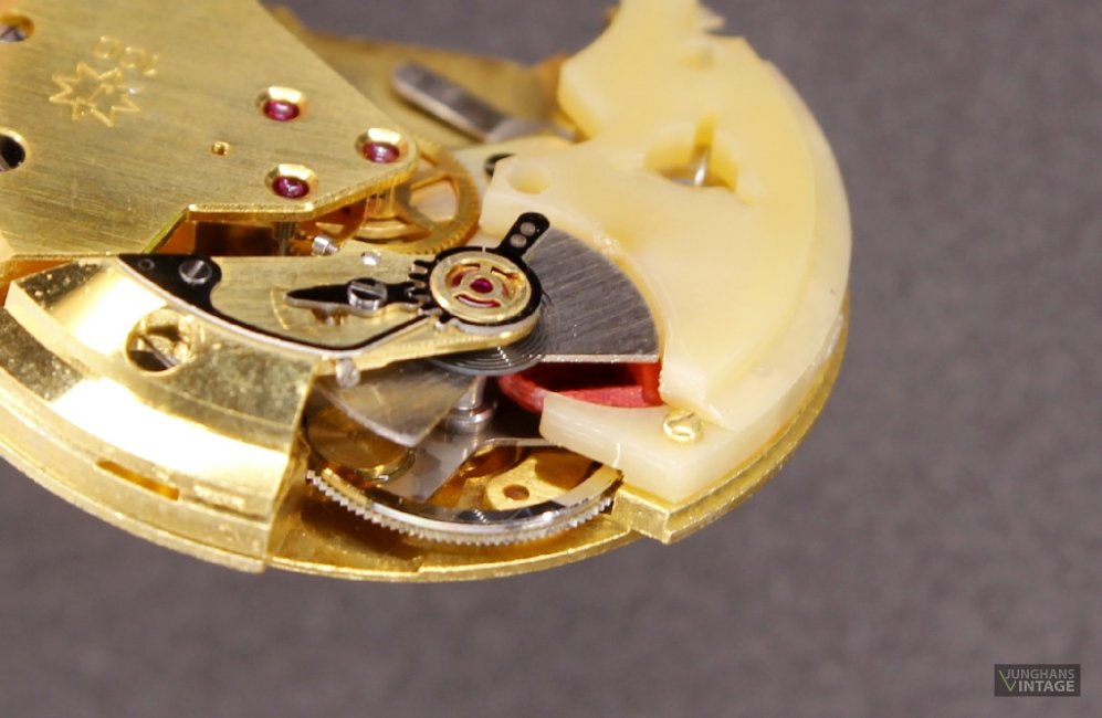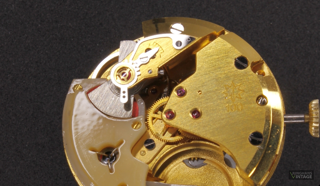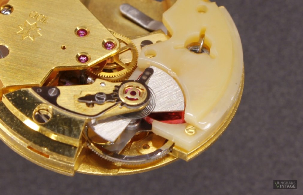 Das hier gezeigte Werk hat eine Feinreglage mit der teuren, junghanseigenen Sektorverzahnung.