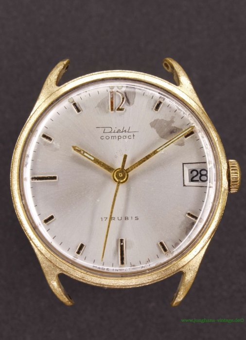 • Markenzeichen/Aufdruck ZB: Diehl compact; unter Zentrum: 17 RUBIS; unter 6: MADE IN GERMANY; Boden: STAINLESS STEEL BACK SHOCK & WATERPROOF