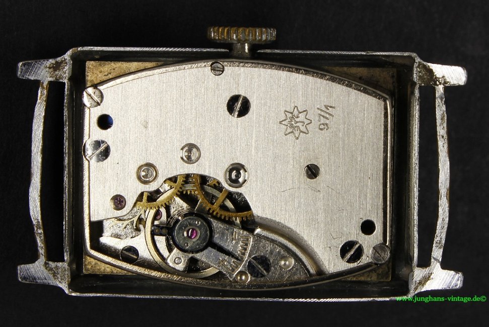 Das Junghans J97 wurde von 1940 bis 1952 gebaut. Das J97 besitzt normalerweise 4 Steine, eine glatte Ringunruh und einen Palettenankergang. Es sind jedoch verschiedene Versionen des J97 zu finden, mit unterschiedlicher Steinezahl (oft auch mit Stein- statt Stahlpaletten), mit einer Unruh mit imitierten Ausgleichsschrauben und es ist wohl auch eine Version mit Datum zu finden (Junghans J97/3), die ich aber noch nie gesehen habe.