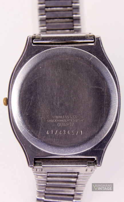 Diese Uhr müsste eigentlich unter der Rubrik: Von Junghans verbaute Fremdkaliber zu finden sein, dennoch möchte ich die wenigen, auf dieser Webseite vorgestellten Junghans Quarz-Kaliber nicht noch weiter verteilen.