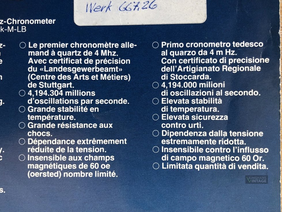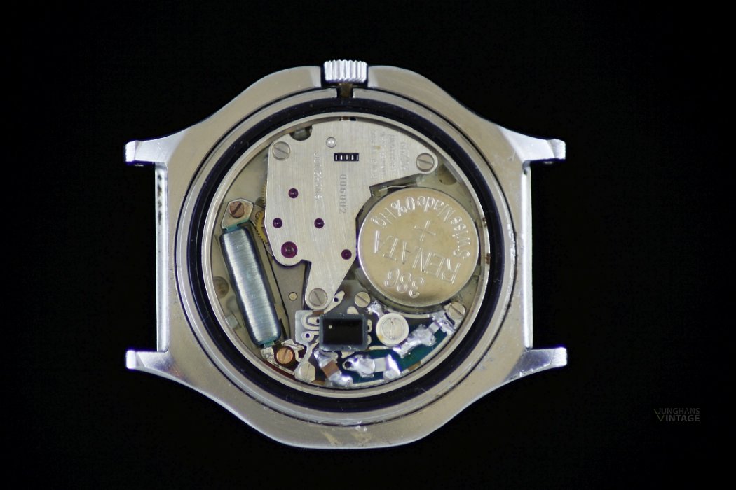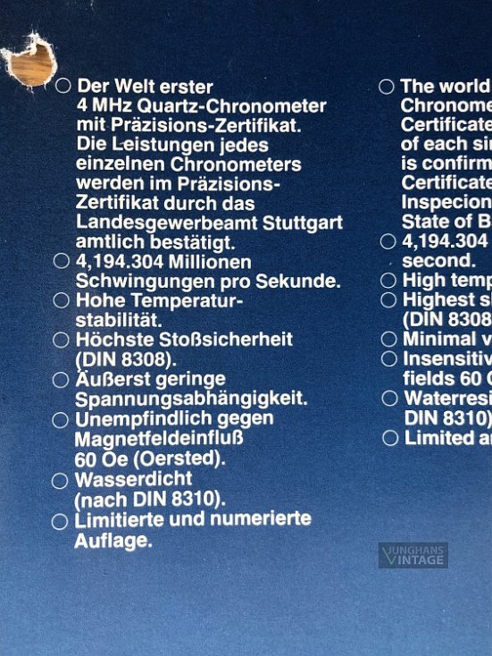 Vom Junghans Quarz Chronometer gab es nur 2000 Stück, die Seriennummer startete mit 5000. Die gezeigte Uhr trägt die individuelle Seriennummer 006002.