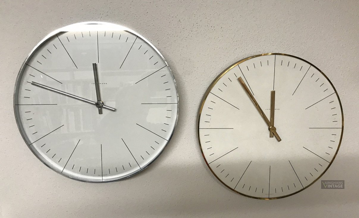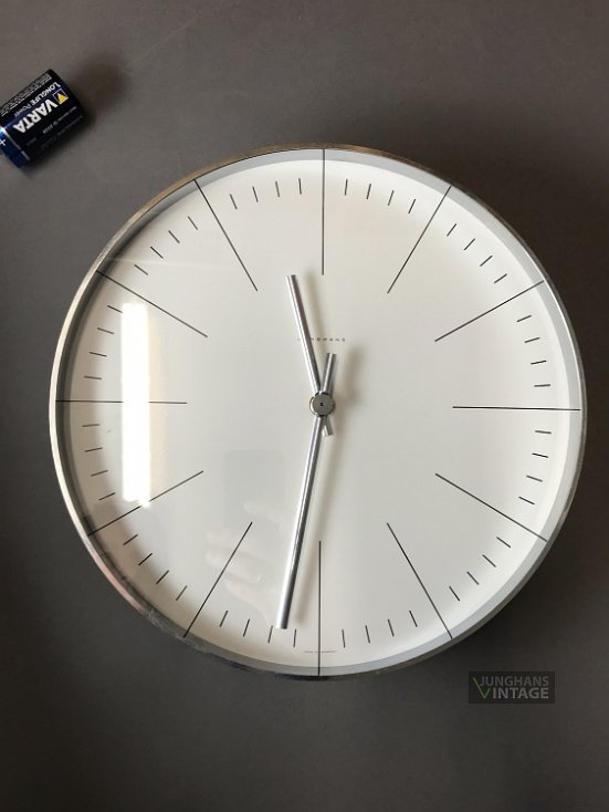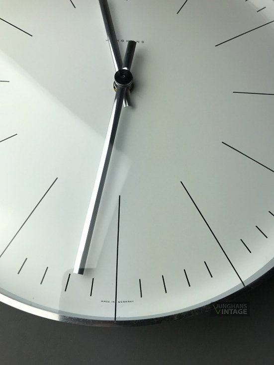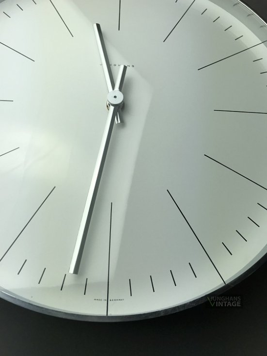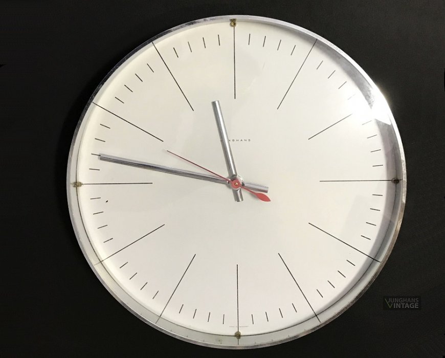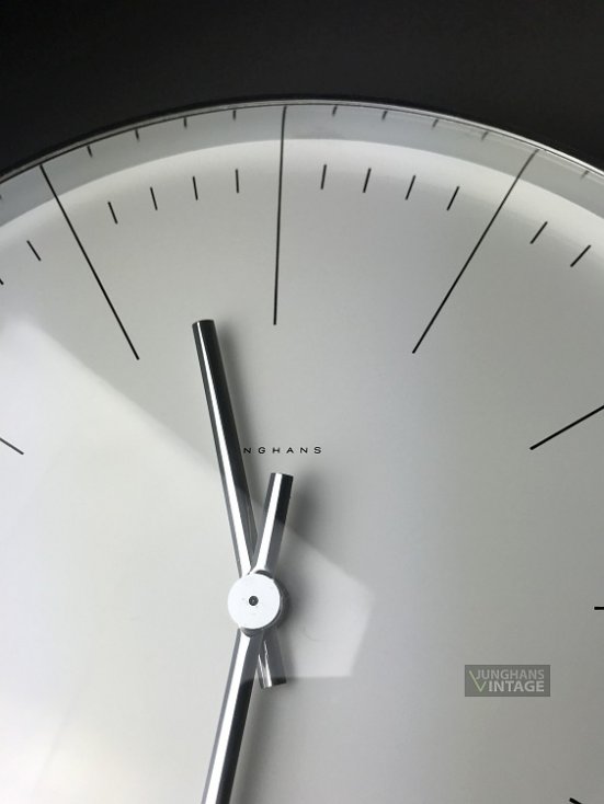 Neben der berühmten tropfenförmigen Küchenuhr mit Kurzzeitmesser schuf Max Bill um 1958/59 in Kooperation mit Junghans auch Wanduhren. Es gibt drei verschiedene Varianten der Uhr mit den Strichen.