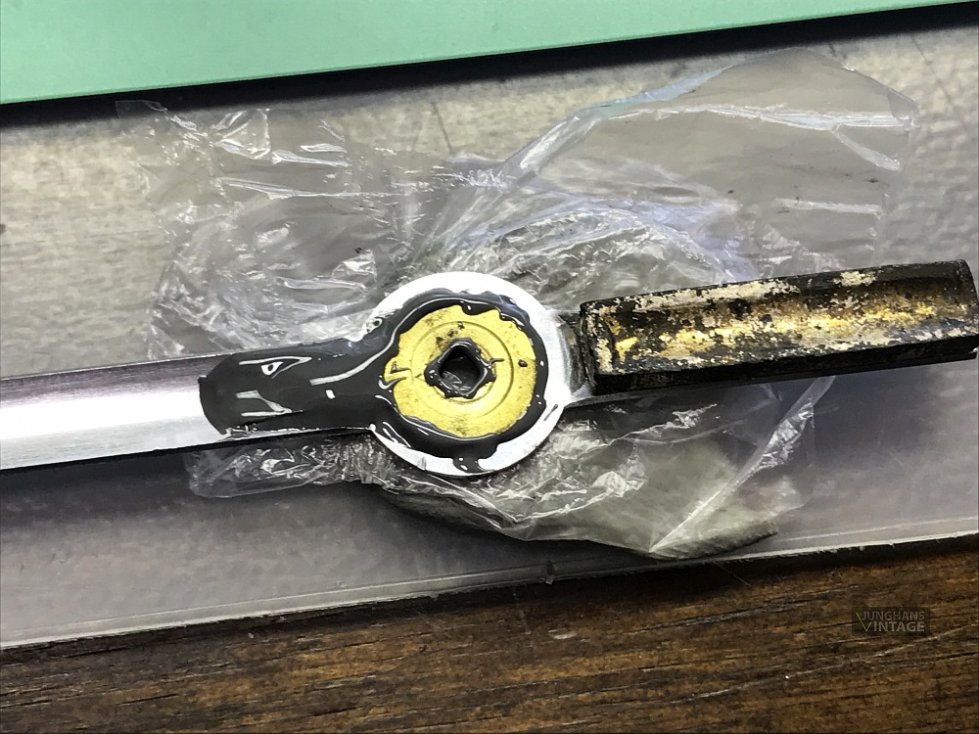Glücklicherweise ließ sich der Kleber, mit dem die Messingteile aufgeklebt waren, mit einem Fön so erhitzen, dass dieser weich wurde und sich fast Rückstandslos entfernen ließ.