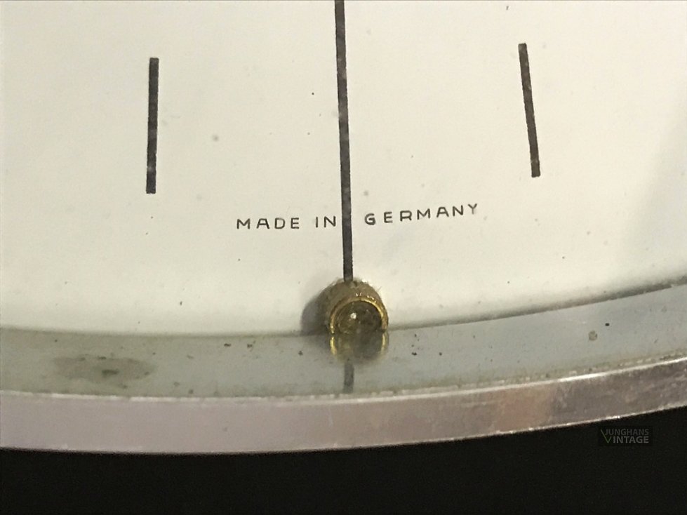 Die hier gezeigte Variante mit der Referenznummer 322/0389 hat ein verchromtes Gehäuse, einen Durchmesser von 30 cm, kostete 140,- DM und ist mit einem Glas ausgestattet.