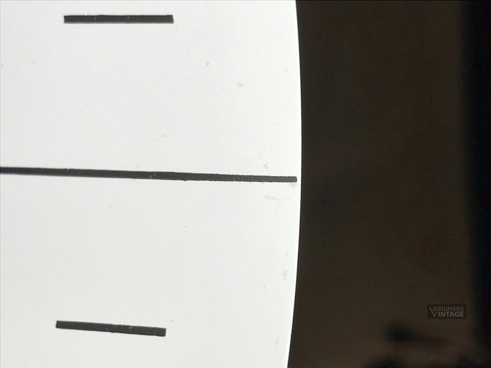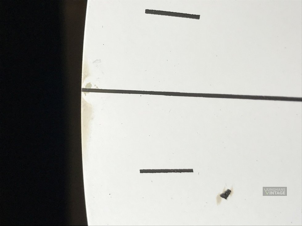 Beim 9-Uhr Indexstrich war ein Fleck auf dem Zifferblatt sichtbar. Dieser konnte nicht komplett entfernt werden.