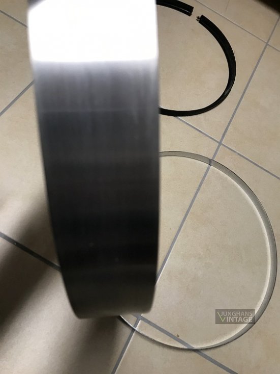 Die Gehäuseteile wurden gereinigt und vorsichtig poliert bzw. mattiert. Der kunststoffüberzogene Werkhaltering wurde mit einem Kusnstroffreiniger gereinigt.