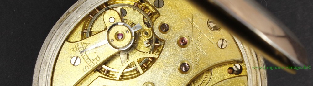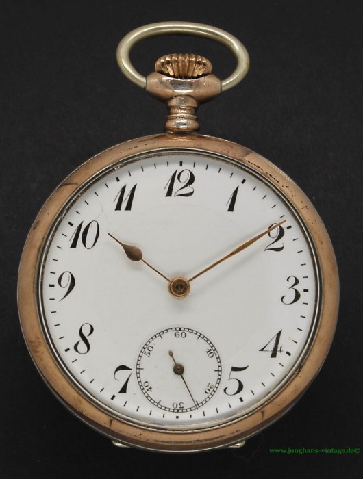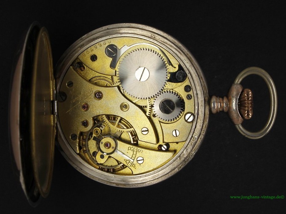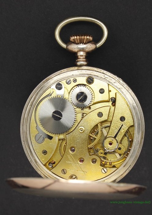 Nachdem ab 1903 bei Junghans mit der ersten Taschenuhr die Kleinuhrenfertigung begann, konnte im Jahr 1910 die Serienreife erreicht werden. Oskar Junghans (1876 – 1927) entwickelte die Taschenuhr mit dem Kaliber J9. Endlich eine Uhr mit Volltrieben und massiven Platinen, die nicht nach dem Vorbild der amerikanischen Taschenuhren, die häufig mit Hohltrieben und Pfeilerwerken ausgestattet waren, hergestellt wurde.