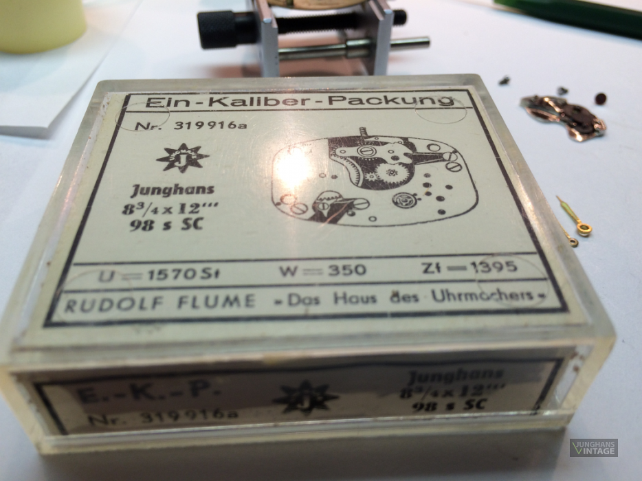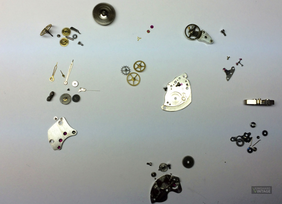 Wie schon im Newsletter angekündigt wollte ich mich endlich des Kalibers Junghans J98/5 bzw. Junghans 698.75 annehmen. Dieses ursprüngliche Formkaliber bewährte sich so sehr, dass die Junghans-Konstrukteure beschlossen, dieses mit einem aufgesetzten Automatikmodul zu versehen.