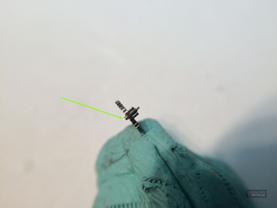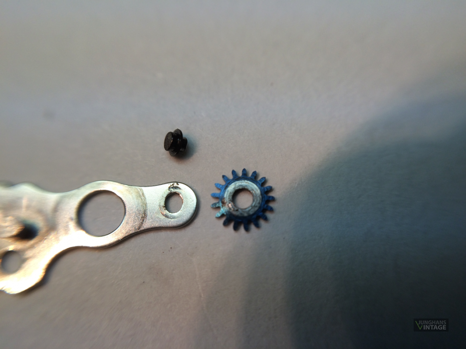 Bei der Remontage des aufgesetzten Automatikmoduls zeigte sich leider, dass der Zapfen eines Rades abgebrochen war.