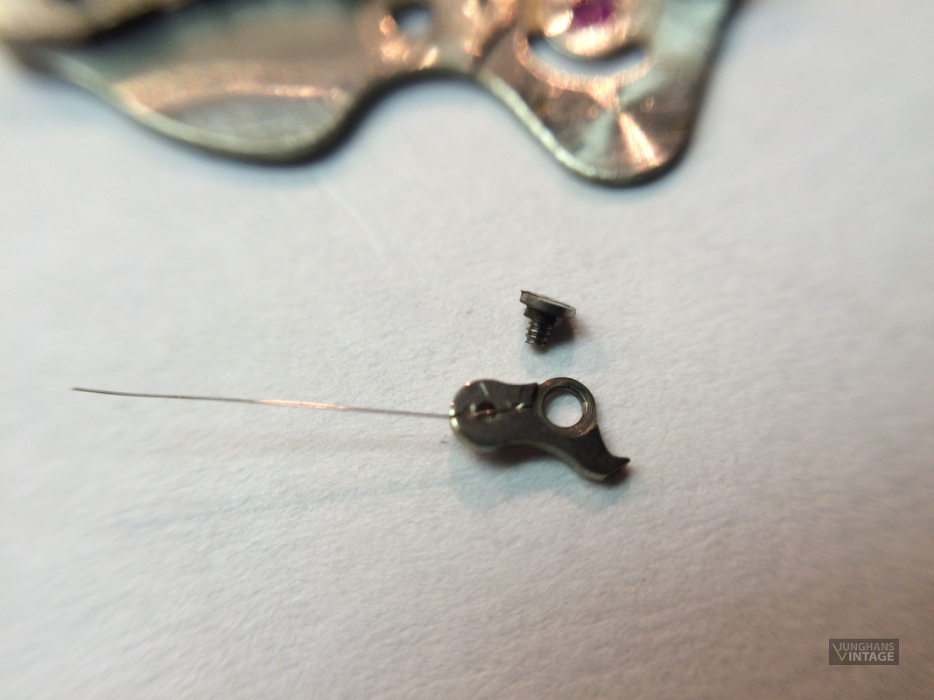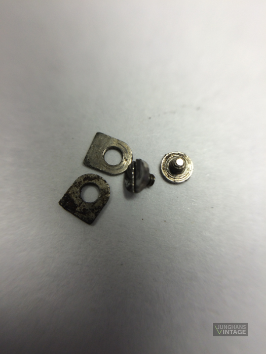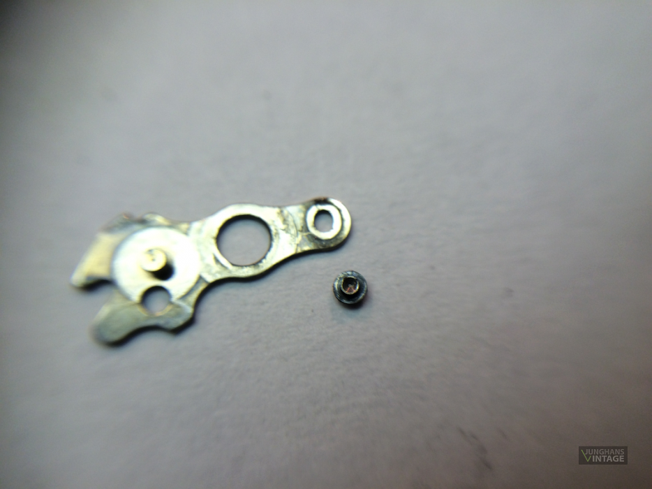 Leider war die Ein-Kaliber-Packung, die ich mir irgendwann zugelegt hatte, schon beim Kauf ausgeweidet und bei weitem nicht mehr komplett. Und natürlich war die Packung nicht für ein J98/5 und von Automatikteilen dementsprechend keine Spur. Aber immerhin war eine nutzbare Winkelhebelschraube vorhanden.