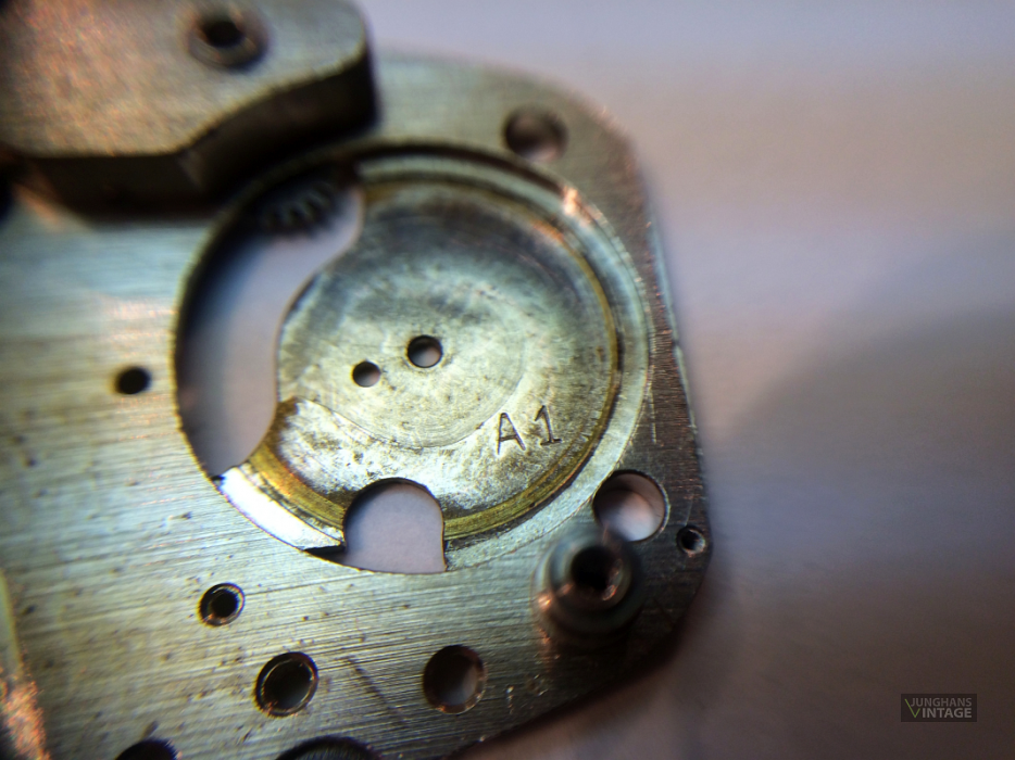 Bei anderen Junghans J98 ist der Code manchmal unter dem Federhaus zu finden, wie bei dem Foto des Spenderwerkes zu sehen.