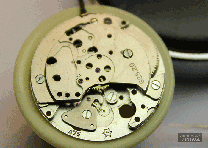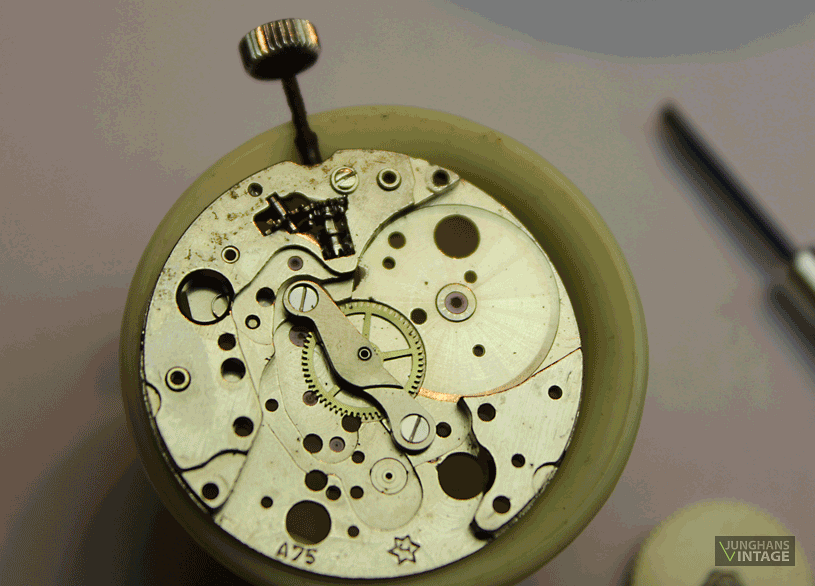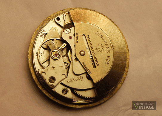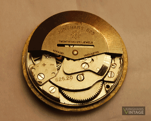 Das Junghans 625 ist das letzte mechanische Werk von Junghans vor dem Quarzboom. Dieses Kaliber wurde von Junghans nur in den Jahren 1975 – 1976 gefertigt. Die vorliegende Uhr stammt aus dem Januar 1975 (A75).