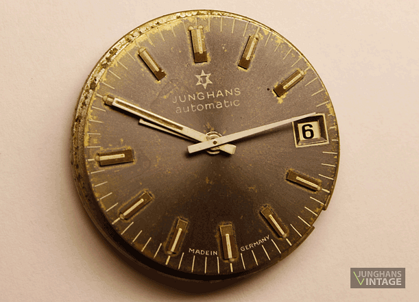 Wieder eine alte Junghans Uhr, die darauf wartete, wieder in Gang gesetzt zu werden. So habe ich mich also vor einiger Zeit über diese stark verdreckte Junghans 625.20 gestürzt. Die Uhr lief nicht mehr, nur die Zeigerstellung funktionierte noch, nicht aber die Datumsfunktion.