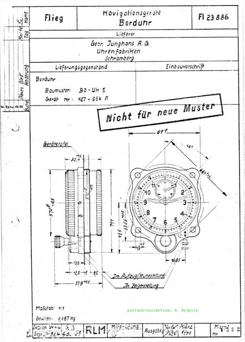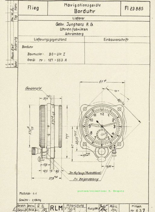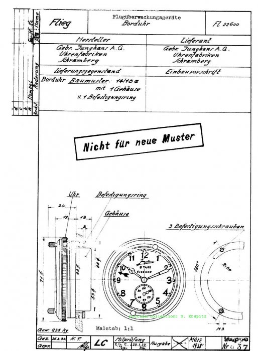 Konstruktionsplan Borduhr; FL. 22600