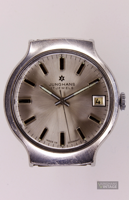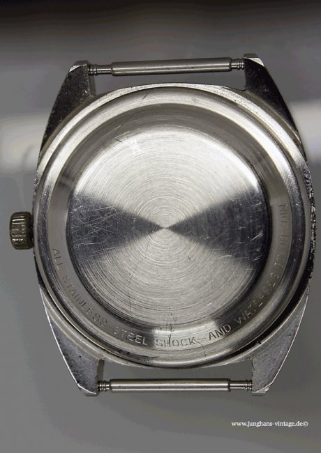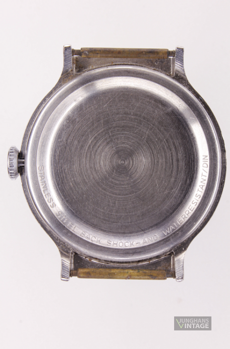 • Markenzeichen/Aufdruck ZB: J im 6-zackigen Stern im „Negativ“ darunter JUNGHANS  darunter 17 JEWELS; Boden: ALL STAINLESS STEEL SHOCK-AND WATERRESISTANT/DIN