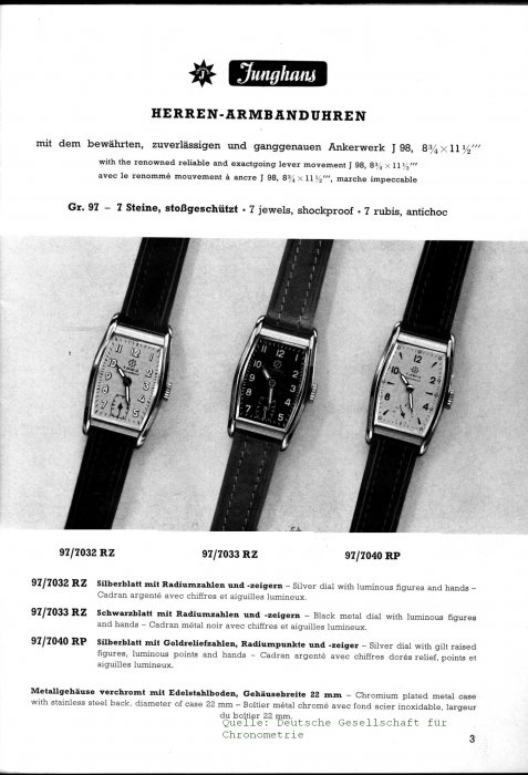 Junghans Katalog 1953; Source: Deutsche Gesellschaft für Chronometrie