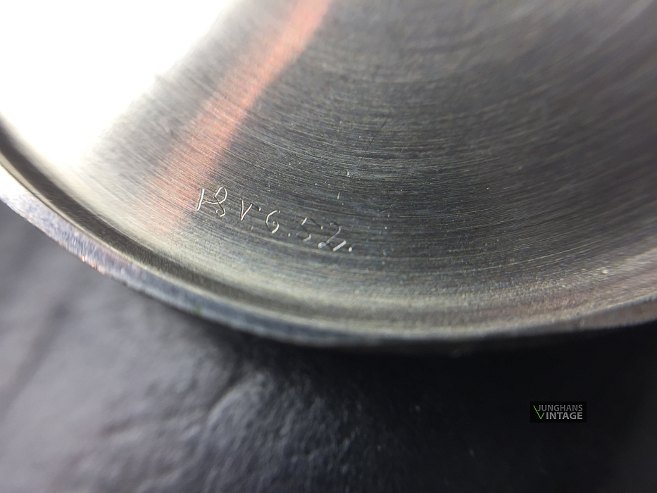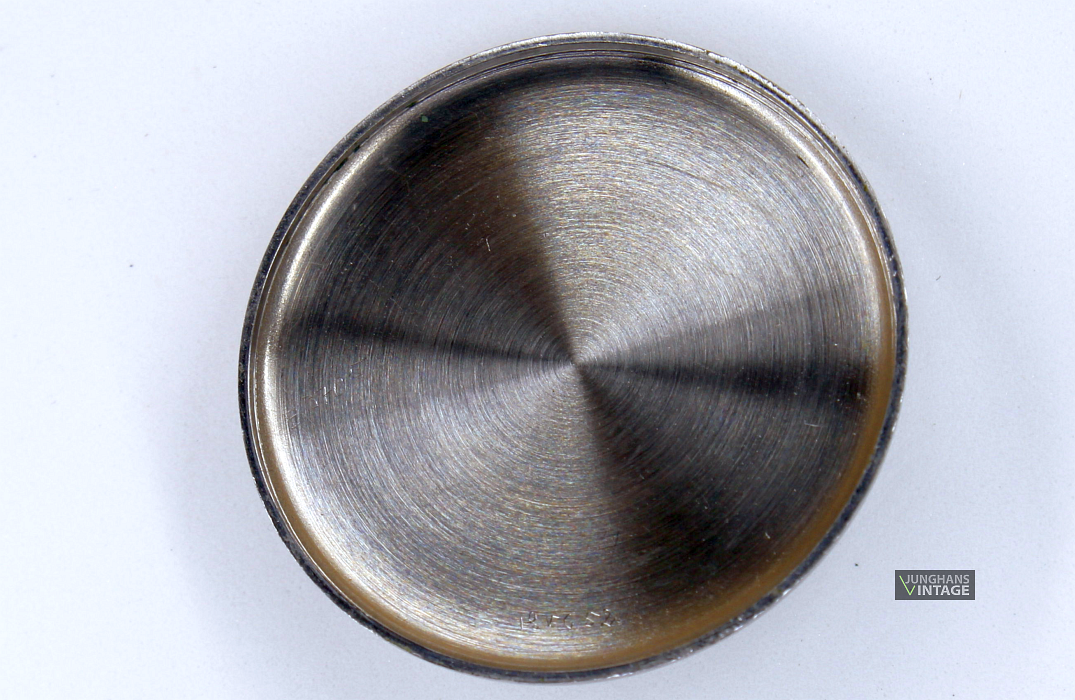 Here, one of the first Junghans J98 is shown. The watch was shown in the catalogue of 1951 (November). The inner case back shows a watchmakers repair sign of 1952.