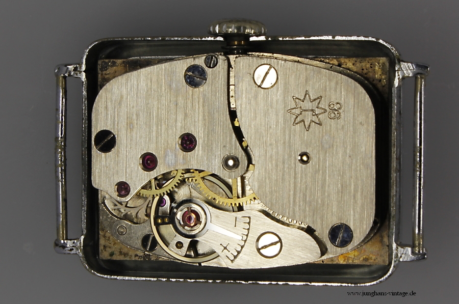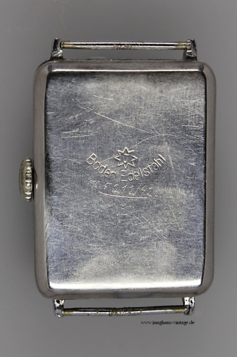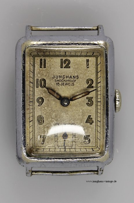 • Trademarks/imprint: JUNGHANS 15 RUBIS; STOSSGESCHÜTZT; Back: center: J in eight-pointed star; STAINLESS STEEL BACK SHOCKPROOF