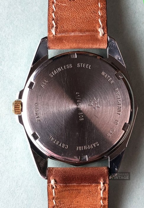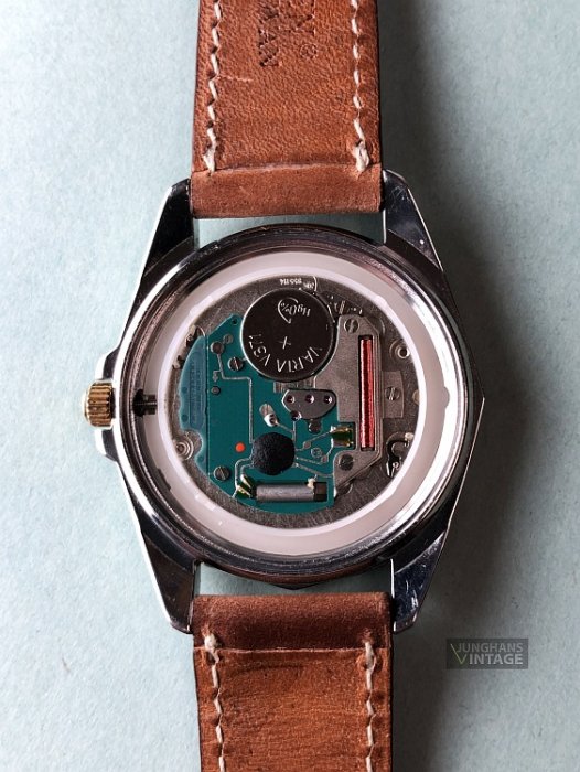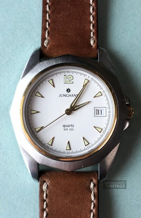 Trademarks/imprint: J in the eight-pointed star (negative); JUNGHANS; under center of hands quartz WR 100 Back: ALL STAINLESS STEEL WATER RESISTANT 10 BAR SAPPHIRE CRYSTAL QUARTZ 41/4857 808