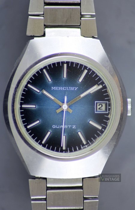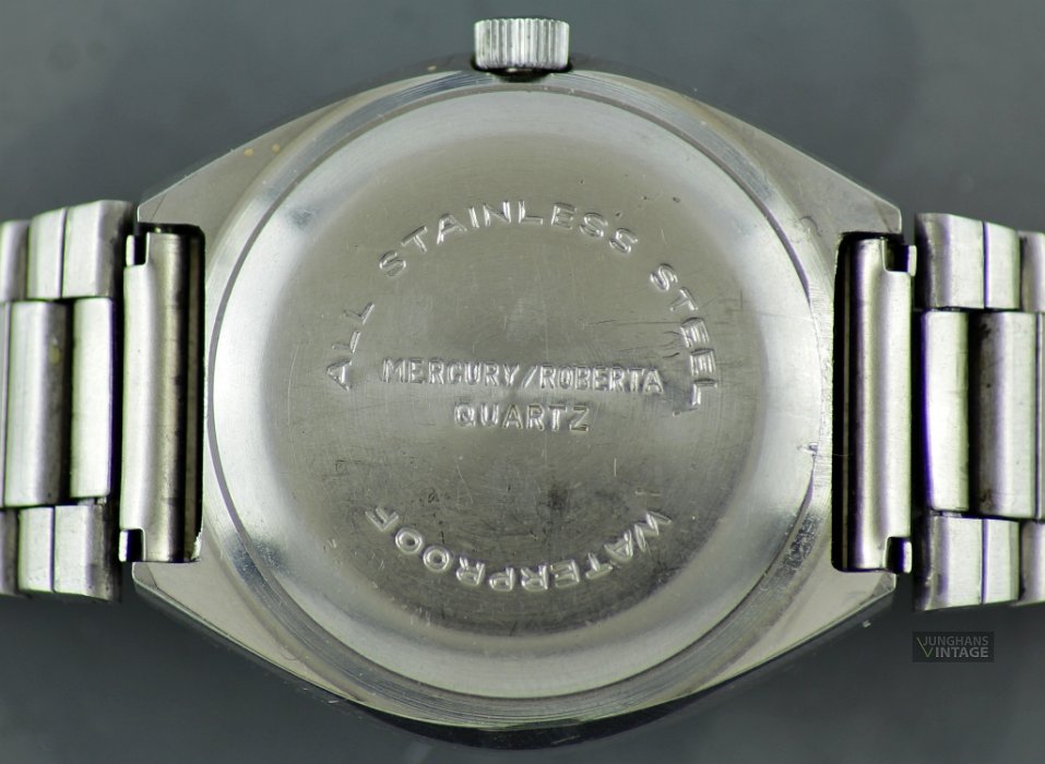 The dial of the watch is labeled with MERCURY, which refers to the Pforzheim watch and case manufacturer Robert Kauderer (Roberta watch factory). The imprint on the snap-on case back also points directly to it: MERCURY / ROBERTA