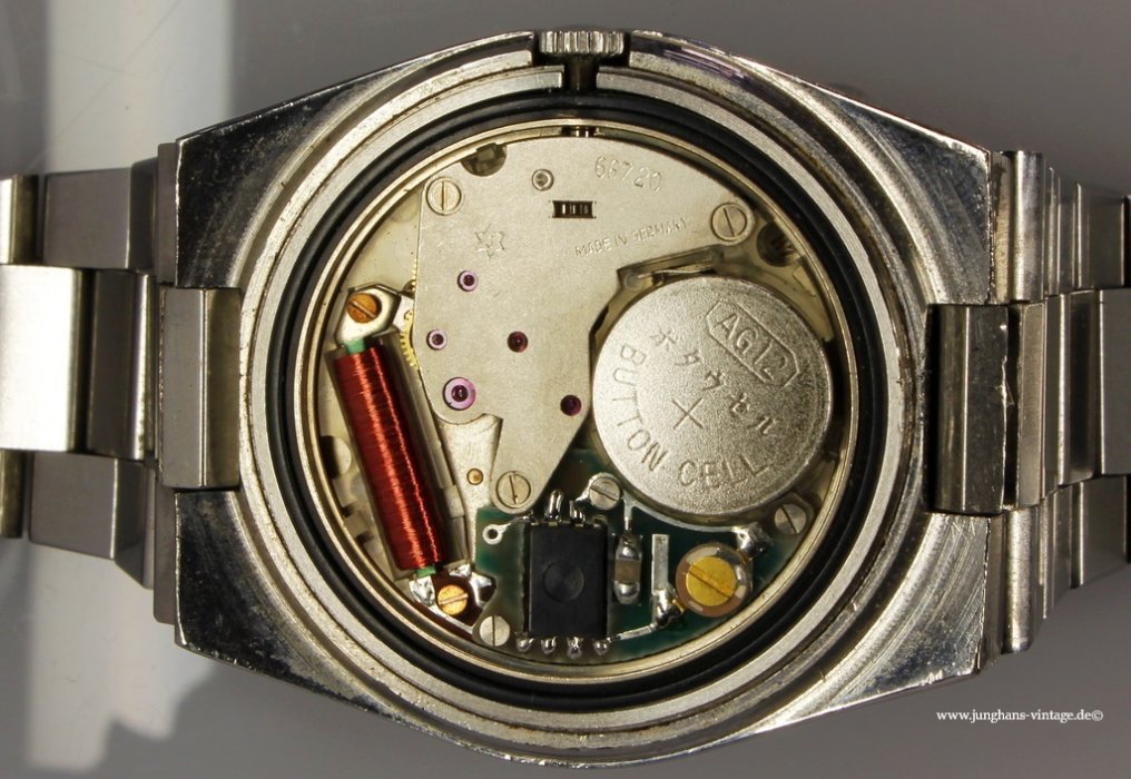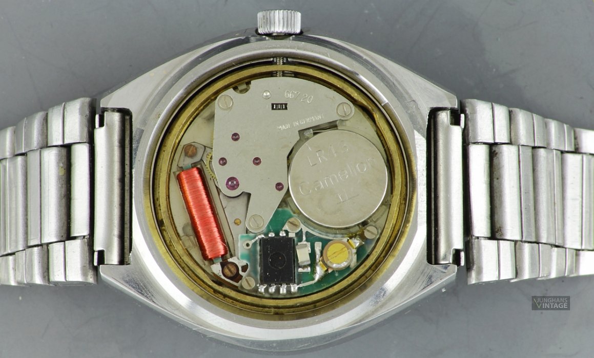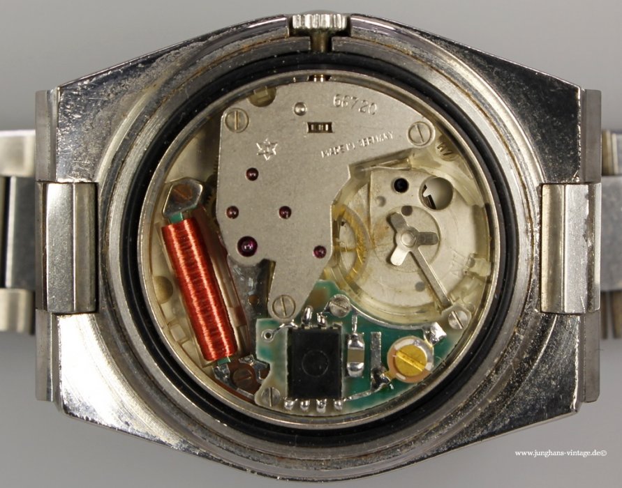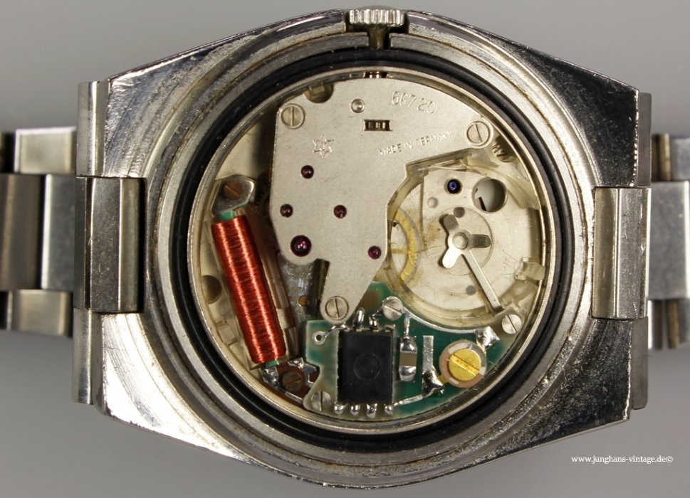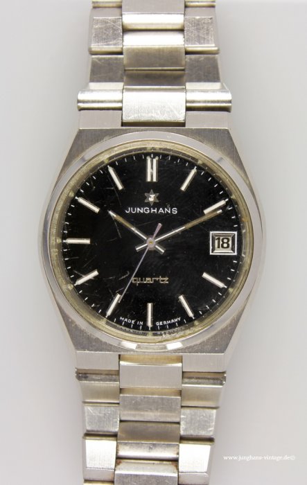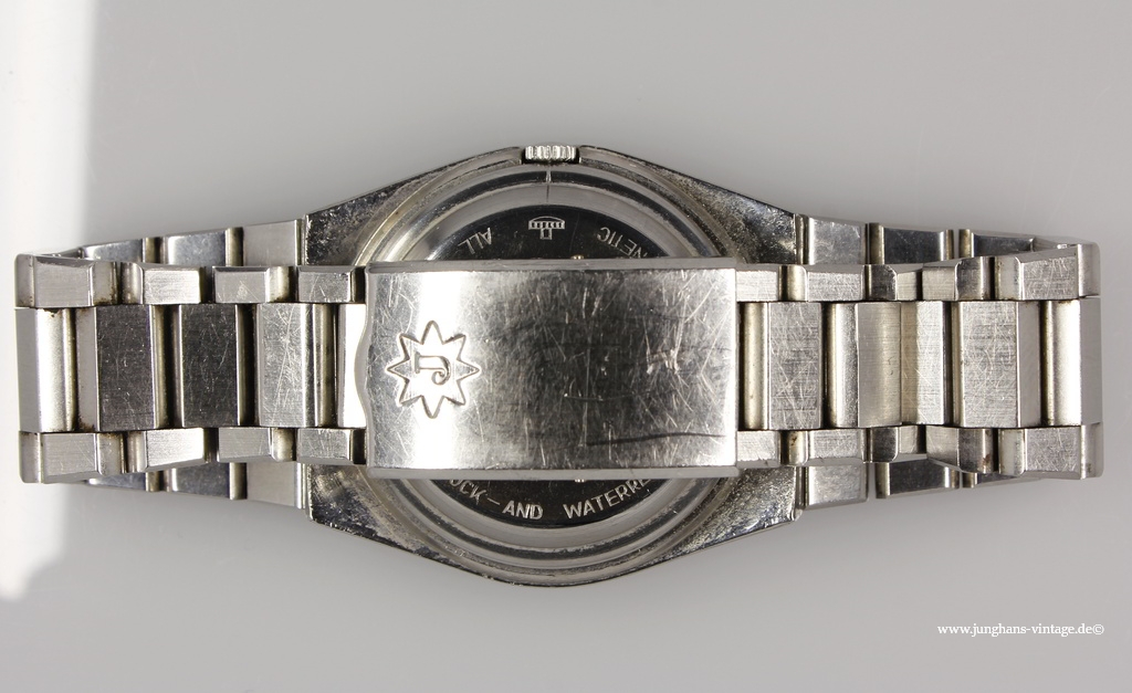This watch with the original bracelet and just such clasp shows two different Junghans trademark: On the dial and on the movement is the J in the six -pointed star, on the clasp the J in the eight-pointed star.