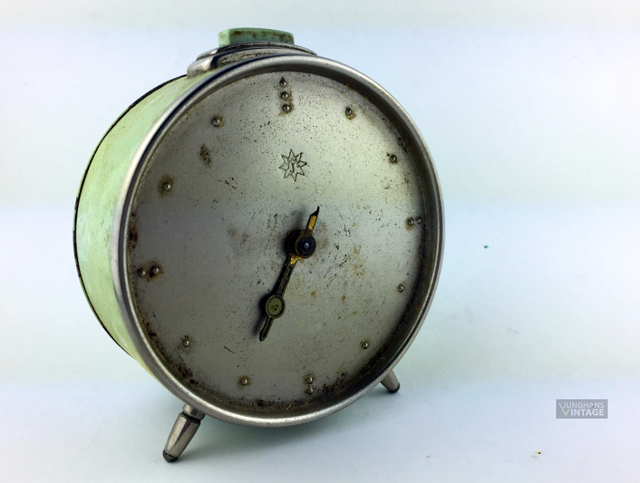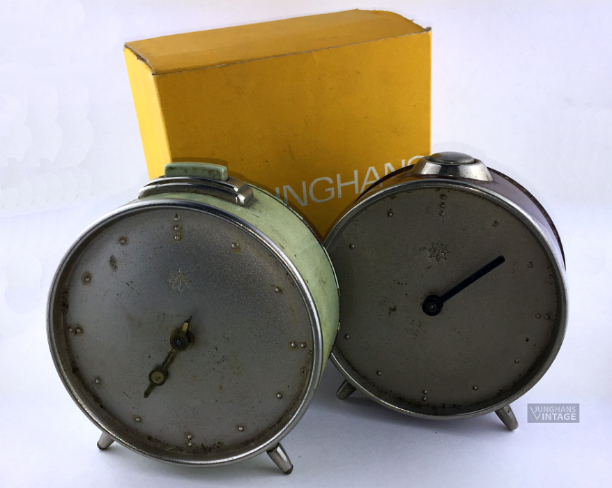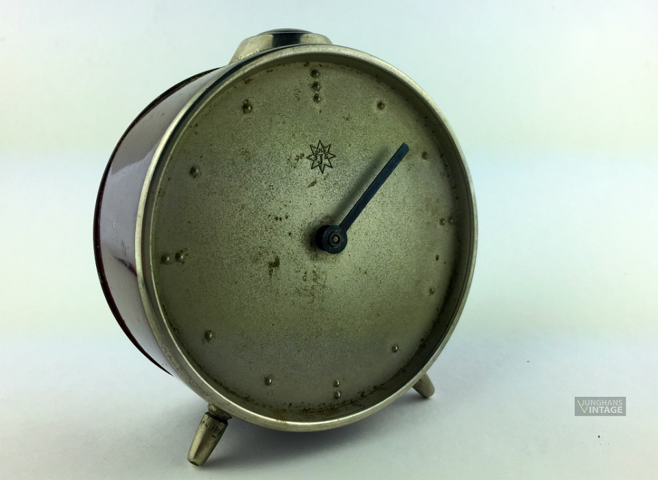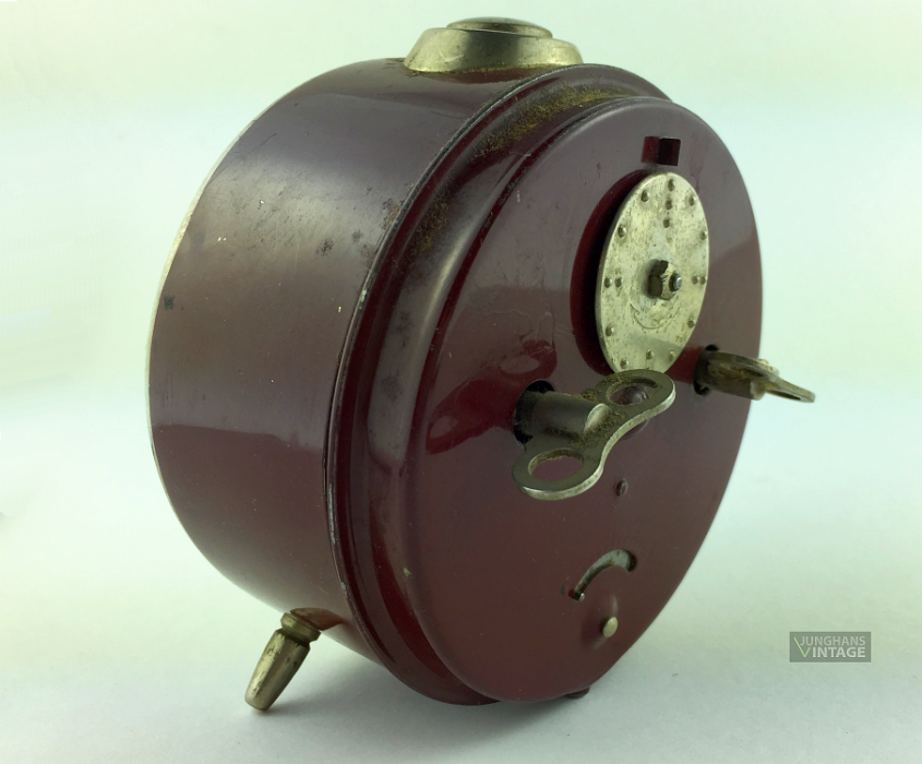 The two alarm clocks were only a short time with me, I could only take pictures of them. Whether the paper-box actually belongs to one of the alarm clock is unlikely, even the clockwork was hidden from me. The hands are only present in fragments.