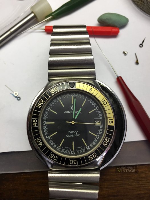 Junghans 667.20 navy quartz; bezel lume dot first layer