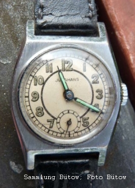 Some companies wanted a double signature on the dial. In the "Deutsche Uhrmacher-Zeitung" of 1939 (No. 31, page 451), the ZentRa Reichstag decided that the Trademark and the brand should no longer be in common. This watch with the caliber J81 must therefore have been produced before 1939.