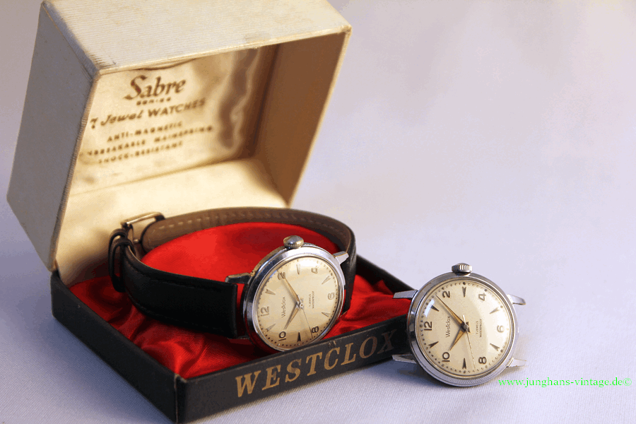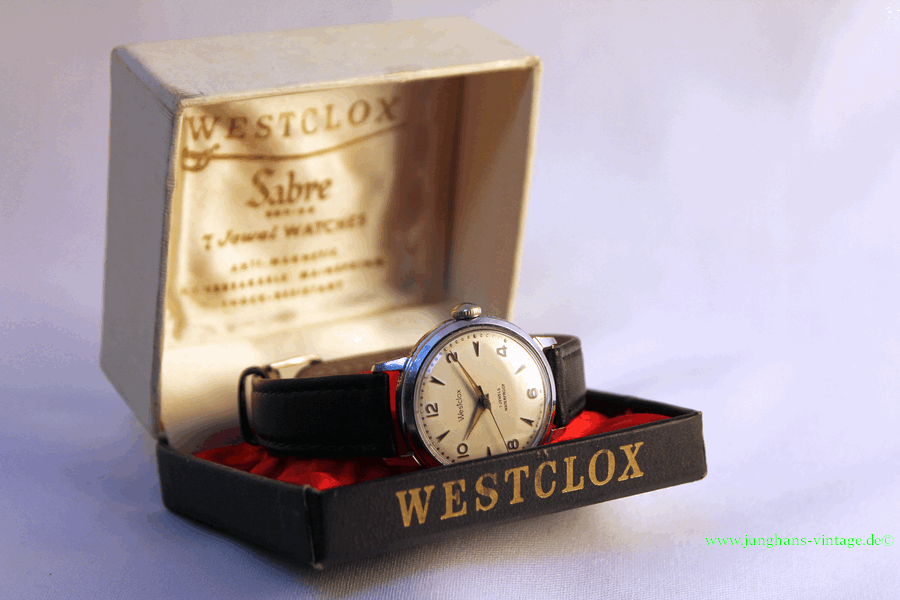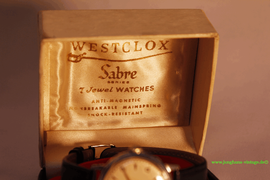 On the inside of the lid of the box the watch is assigned to the "Sabre Series". This also shows the saber below the lettering WESTCLOX.