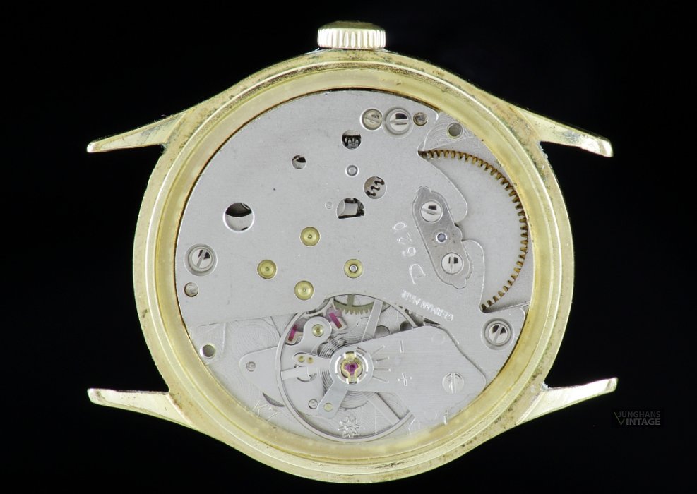 Auch wenn die Prägung auf der Hauptplatine nur D 620 zeigt, handelt es sich bei der gezeigten Uhr um das Kaliber Junghans 620.70.
