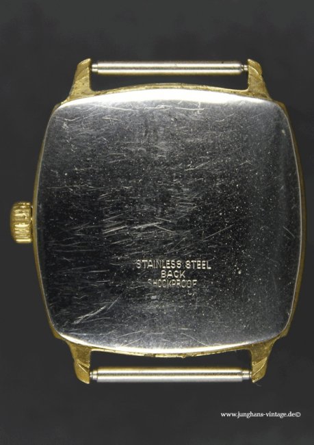 • Markenzeichen/Aufdruck ZB: JUNGHANS 17 JEWELS; bei 6: MADE IN GERMANY; Boden: STAINLESS STEEL BACK; J im 8-zackigen Stern SHOCKPROOF WATERPROTECTED