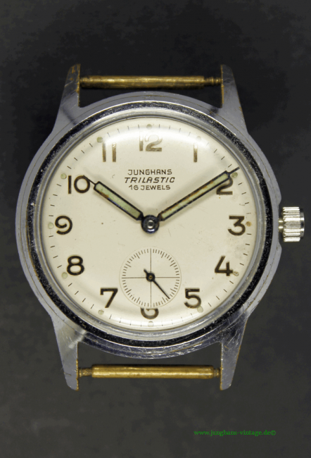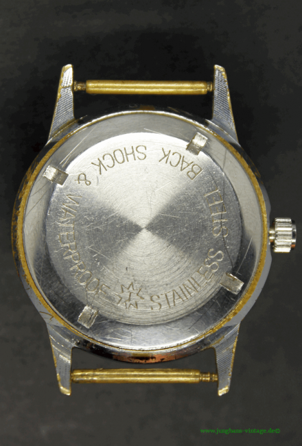 • Markenzeichen/Aufdruck ZB: JUNGHANS; TRILASTIC; 16 JEWELS; Boden: J im 8-zackigen Stern; STAINLESS STEEL BACK SHOCK & WATERPROOF