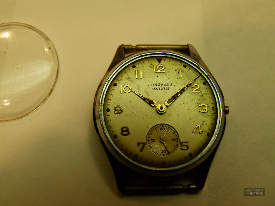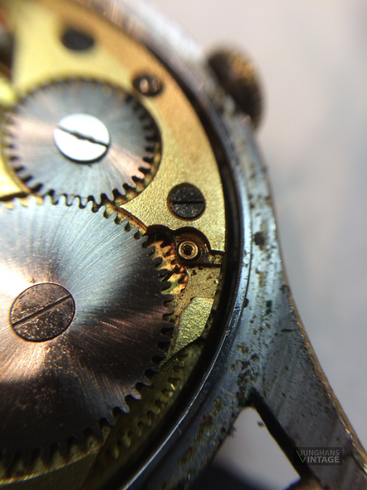 Der Fundzustand der Uhr ließ Hoffnung aufkommen lassen, auch wenn das Werk nicht lief, funktionierte immerhin die Zeigerstellung.