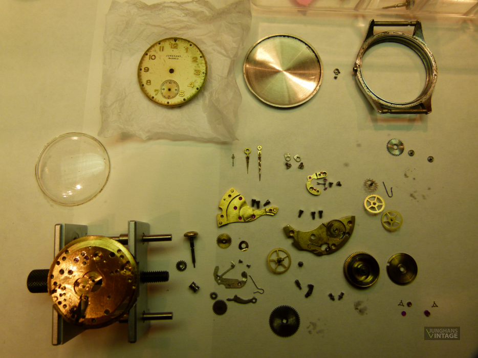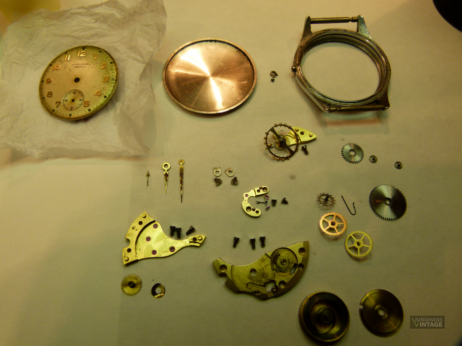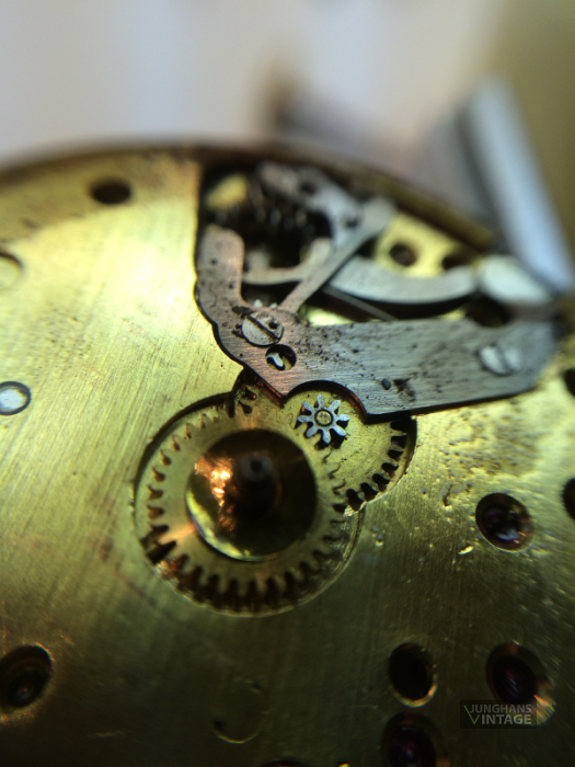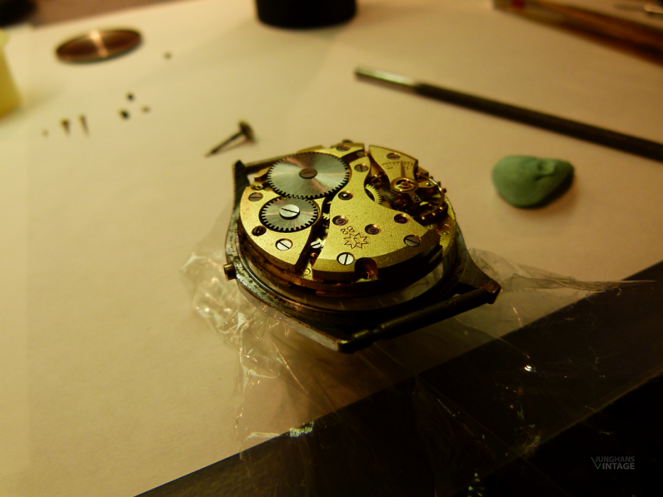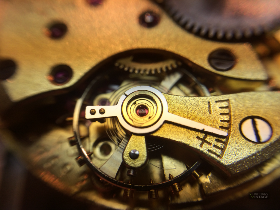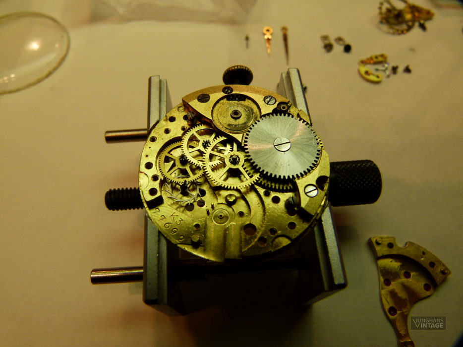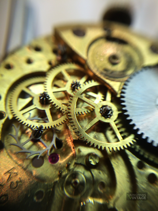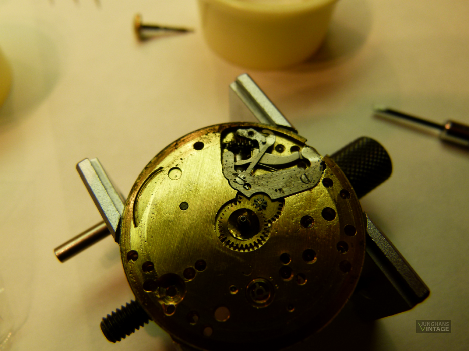 Das Junghans J82; Junghans 682.70 ist ein angenehm zu revisionierendes Werk. Alle Schraubenköpfe sind groß und alle Teile äußerst präzise gefertig. Nicht umsonst gibt es dieses Werk auch in Chronometerqualität mit Feinregulierung.