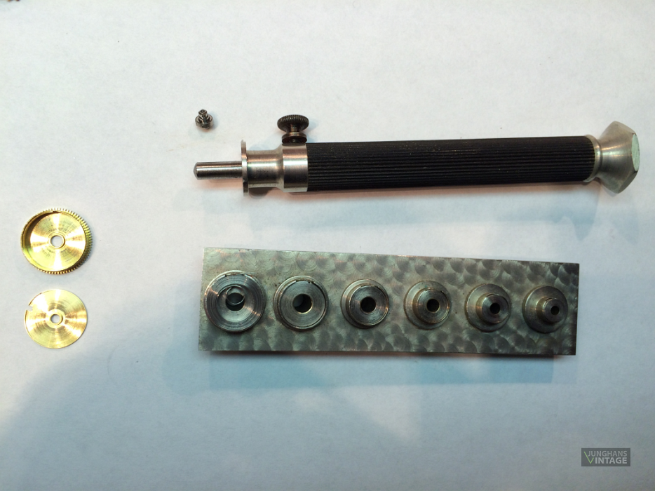 Nach der nochmaligen Nachreinigung wurde zunächst die Aufzugsfeder mit dem Federwinder aufgewunden und in ihr Federhaus gedrückt.
