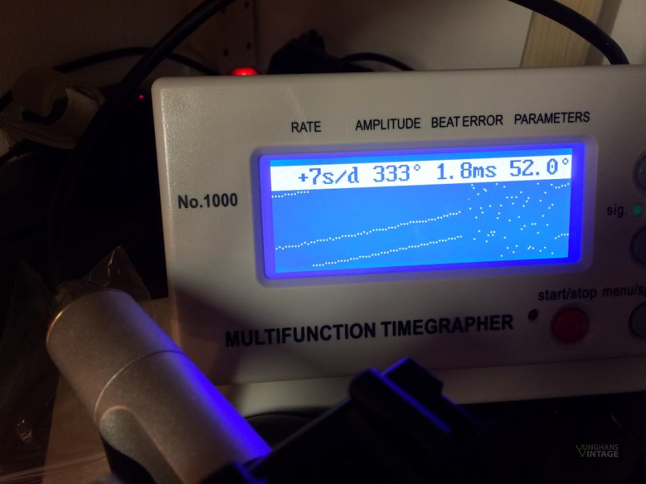 Die Aufzugsfeder wollte ich zunächst nicht erneuern und entschied mich einfach ein paar Tage zu warten und tatsächlich hat sich das Phänomen weitestgehend erledigt und die Uhr läuft sehr konstant (zweites Bild).