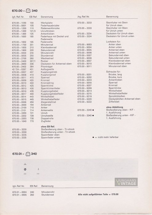 Customer Service handout; movement parts Junghans 670