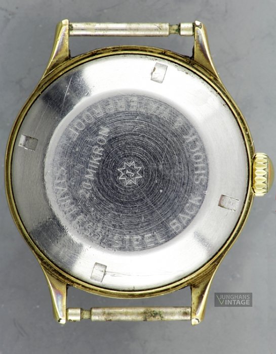 • Trademarks/imprint: JUNGHANS AUTOMATIC 22 JEWELS; Back: STAINLESS STEEL BACK SHOCK & WATERPROOF; J in eight-pointed star