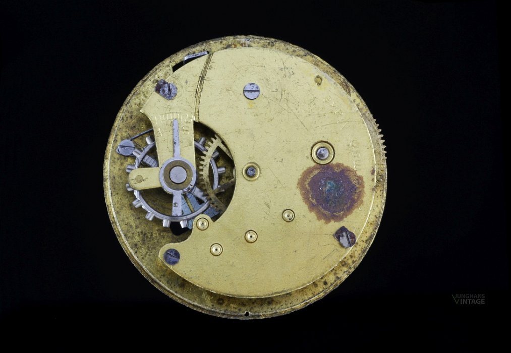This rare and very early Junghans pocket watch dates from the time when Junghans freshly merged with the Schwenningen company Thomas Ernst Haller and is likely to date around 1915.