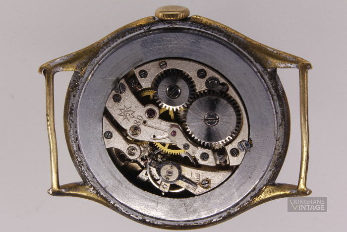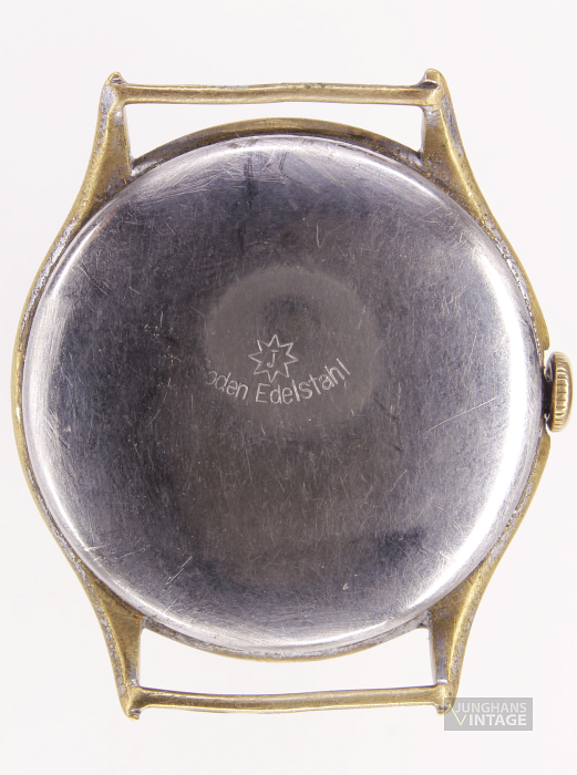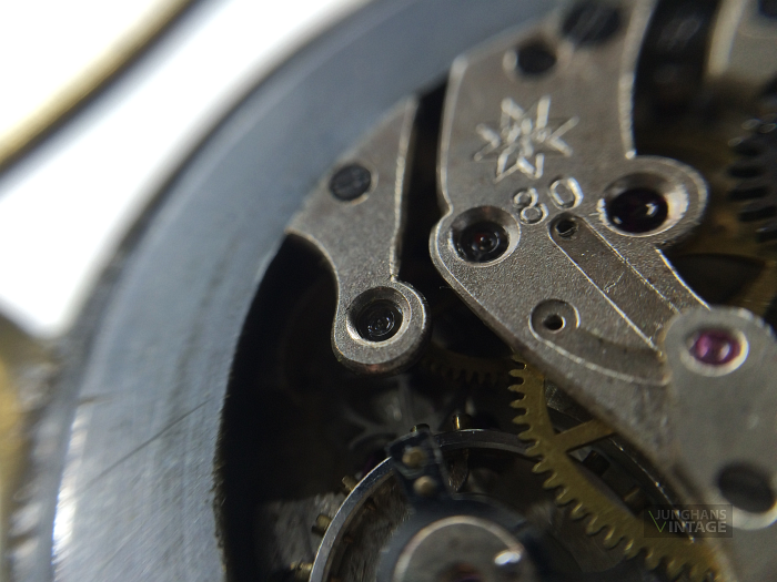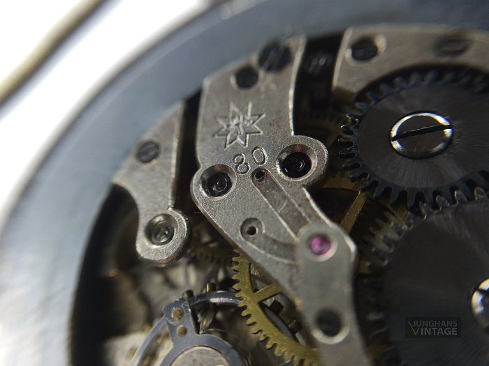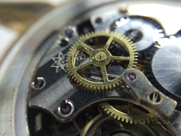 Finally I succeeded to grab a Junghans J80/3 (after 1962/63 called Junghans 680.72). This caliber was designed in 1940 but came on the market first in 1946. The special feature: The watch has a divided train bridge (ie a separate escape-wheel cock) and a sweep second.