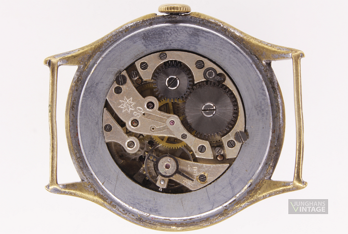 The caliber shows no shock protection, the diameter of the case (without crown) is 36 mm.